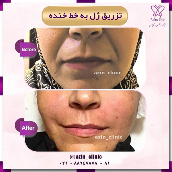 • تزریق ژل خط خنده برای رفع خطوط خنده و خطوط اطراف لب.